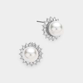 Rhinestone Trimmed Round Pearl Stud Earrings