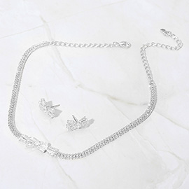 Butterfly Accented Rhinestone Choker Evening Necklace