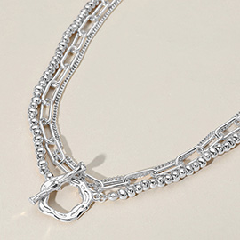 Hammered Metal Cross Pendant Chunky Chain Toggle Necklace