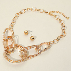 Open Metal Ring Accent Textured Clover Tip Bar Link Chain Necklace