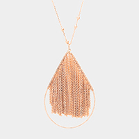Metal Chain Fringe Teardrop Hoop Pendant Long Necklace