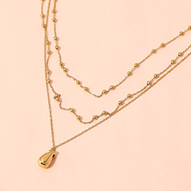 Gold Dipped Triple Layered Flat Disc Accent Curb Chain Necklace