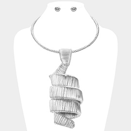 Bold Textured Abstract Organic Shape Pendant Chunky Chain Statement Necklace