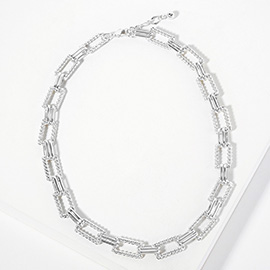 White Gold Dipped Brass Metal Double Paperclip Chain Necklace