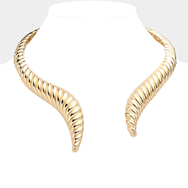 Metal Twisted Pearl Ends Wire Choker Necklace