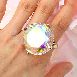 Oval Stone Accent Adjustable Statement Ring