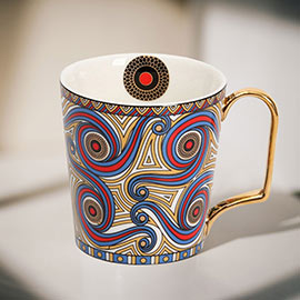 Geometric Patterned Ceramic Tea Mug Cup and Saucer Set